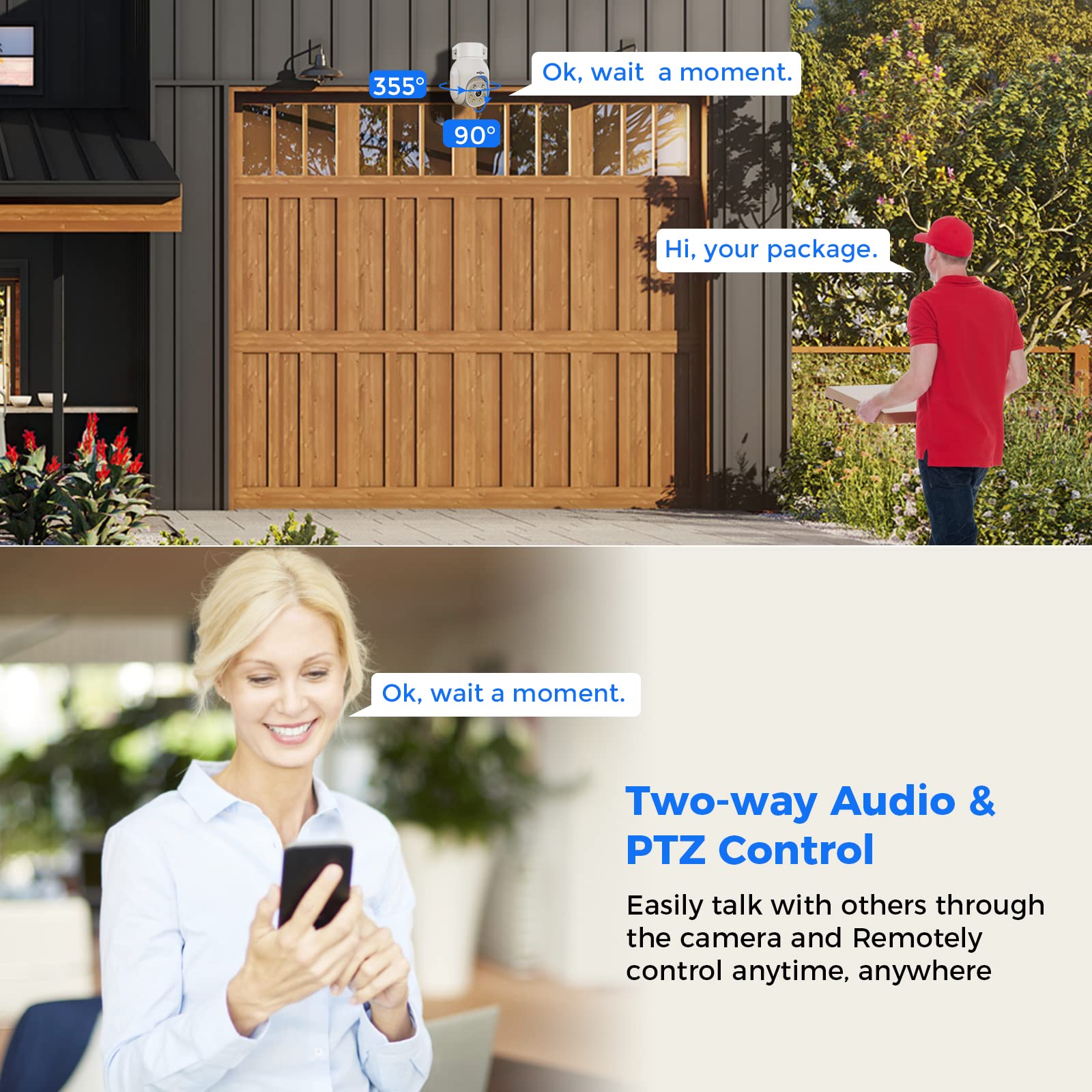 - Two-way audio & Expandable with 10 Channels -- Hiseeu wireless security camera outdoor with Two-way audio function, all 4 outdoor WiFi PTZ cameras allow you to talk to the ones around the security camera anytime anywhere.The wireless surveillance cameras can manage up to 10 cameras easily,you can also add four more bullet cameras or PTZ Cameras