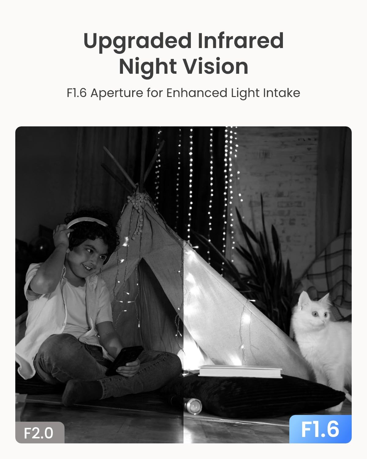 - 5MP QHD RESOLUTION: The professional 3K 5MP lens offers a resolution of 2880x1616 for crystal-clear images and videos. The camera's F1.6 lens aperture allows more light to enter, enhancing the image quality even in low-light conditions.