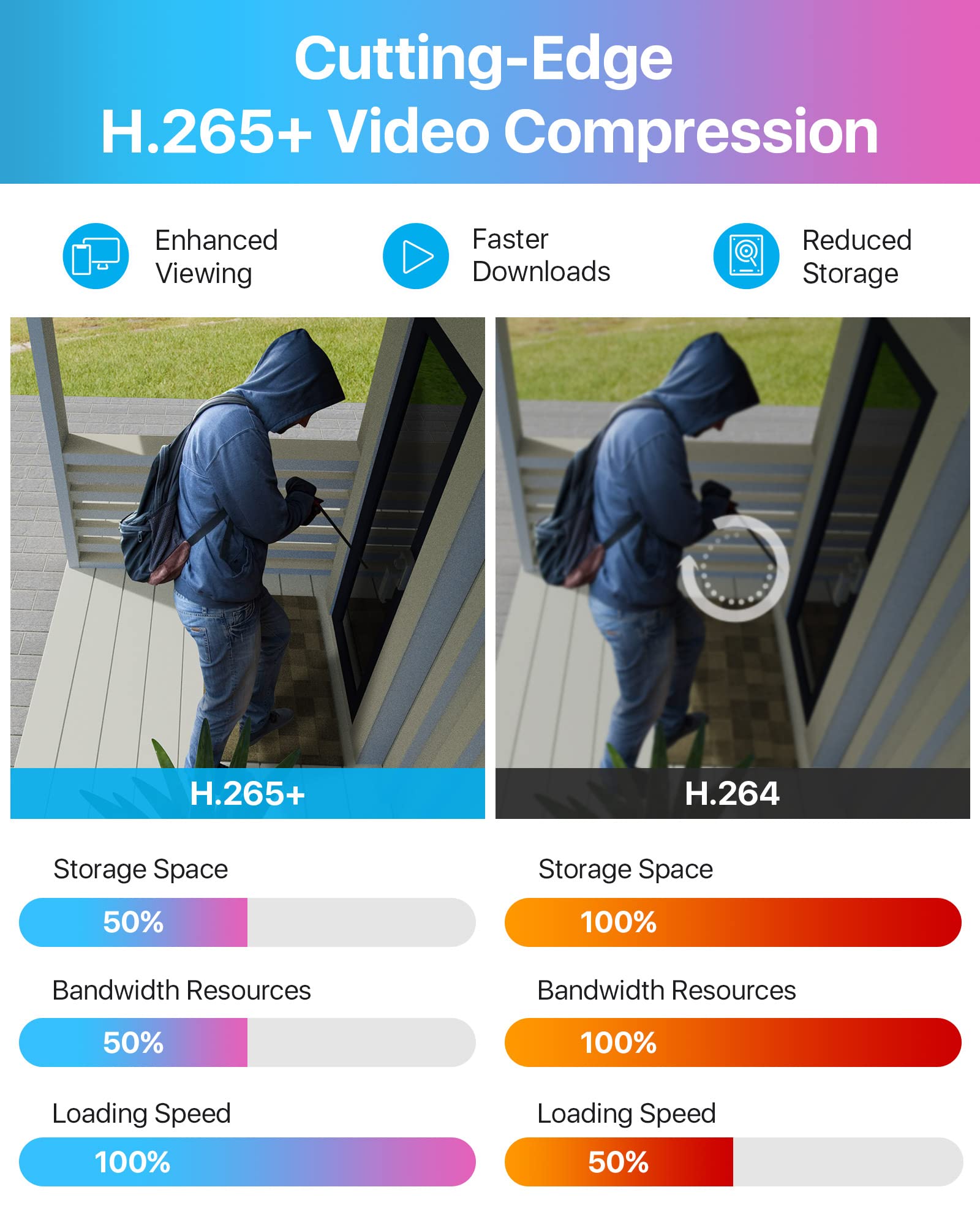 - 【H.265/H.265+ 8CH 5MP Lite HD-TVI DVR】H.265 technology can double the the data compression ratio, keep the high quality video even with low bit-rate.The DVR has a built-in 1TB security-grade hard drive, which supports ultra-long continuous recording. You can set the DVR to overwrite the oldest footage stored internally automatically, or you can transfer those video files by USB to a memory stick or external hard drive.